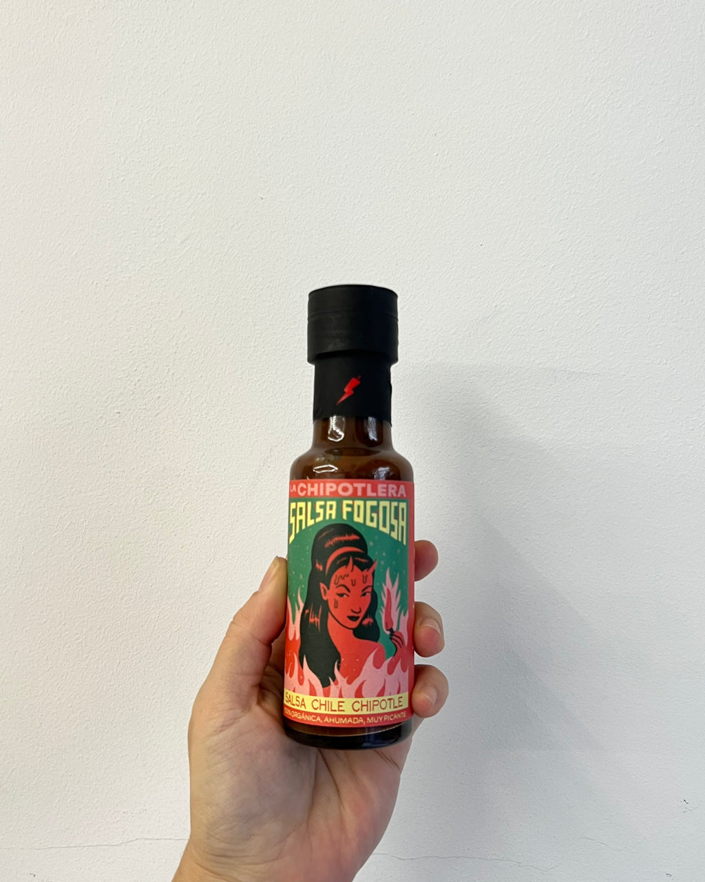 - Ingredientes: Tomate*, aceite de girasol*, vinagre de manzana*, cebolla blanca*, chile chipotle*, azúcar de caña*, sal*, ajo*, polvo de chile de agua*, orégano*, canela*, comino*, laurel*. *Ingredientes procedentes de agricultura ecológica